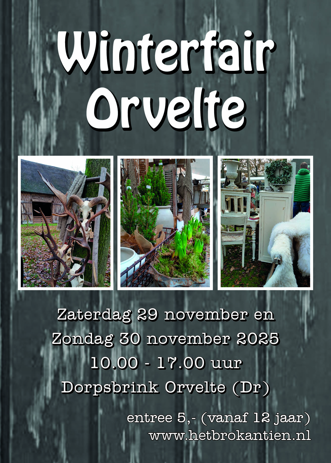 Geliefde populaire winterfair op een unieke locatie. De Brink in hartje monumentendorp Orvelte is hèt decor voor deze fair. Al uit de verte ziet u de vele lichtjes branden en ruikt u de geur van gluhwein en dennengroen.Bij de entree wordt u verwelkomt met de prachtige winterse kransen, bloemwerk en sfeerhaarden. Brocanteurs stallen hun mooiste vondsten uit en decoreren hun kramen met klasse. Naast brocante zijn er mooie stands met winterse kransen en bloemwerk, huis en tuin decoratie in landelijke stijl, vachten, geweien, handbeschilderde houten panelen, vintage, fraaie kleding, lederen tassen, curiosa, bijzondere sieraden, delicatessen...noem maar op!